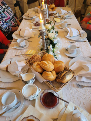 Eigentlich hatte die kfd-Herbern am Samstagmorgen eine Radtour zu „Hugo im Dahl“ mit anschließendem Frühstück geplant. Doch Regen und Sturm machten den Teilnehmerinnen einen Strich durch die Rechnung. Stattdessen wurde direkt zum gemütlichen Teil übergegangen: 38 Frauen genossen ein reichhaltiges Frühstück und verbrachten einen heiteren, unterhaltsamen Vormittag in entspannter Atmosphäre.